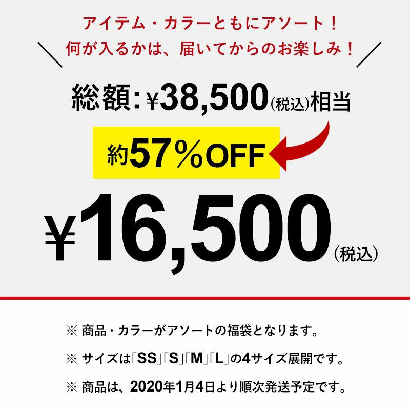 他の画像を見る 【数量限定】2020福袋 UNISEX 【SAIL 福袋】 (セイル) SAIL 福袋 数量限定 ブランド 2020 新年 お年玉 福袋 2020新春 2020年 お正月 賀正 セット 運試し 販売価格 ¥ 13,200 税込 在庫切れ カートに入れる お気に入りに登録する