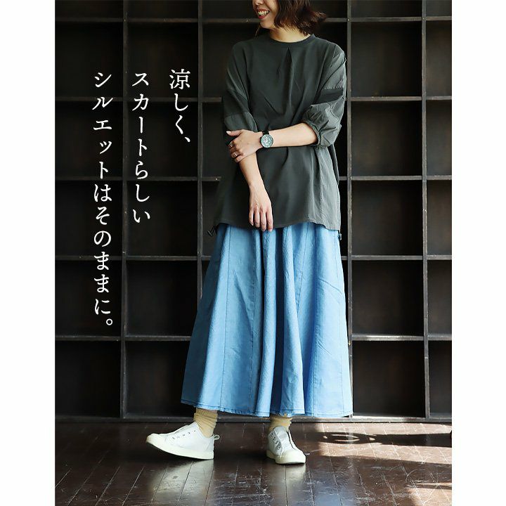 他の画像を見る 涼しく、スカートらしいシルエットはそのままに。 スカート フレアスカート レディース 無地 綿麻 薄手 涼しい 通気性 夏 夏服 ウエストゴム ゆったり 体型カバー 大きいサイズ カジュアル PATY パティ 2~3日でお届け 販売価格 ¥ 5,390 税込 在庫切れ カートに入れる お気に入りに登録する