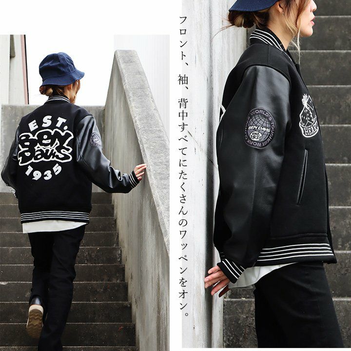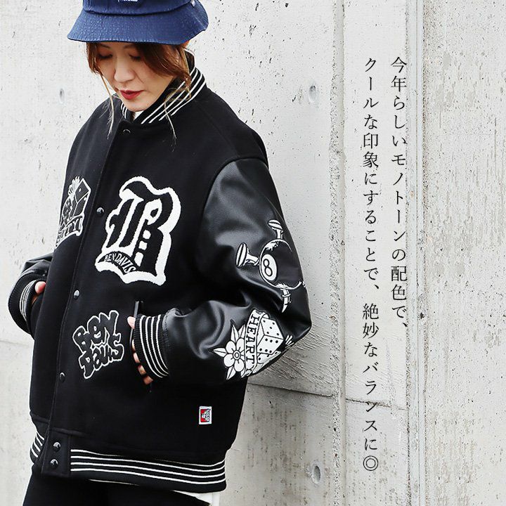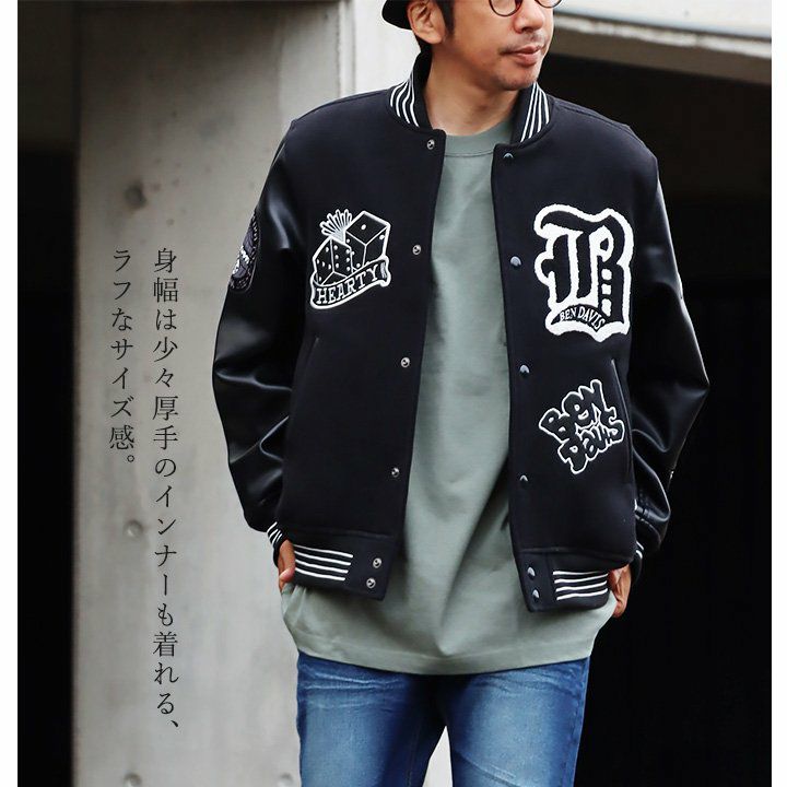 他の画像を見る 定番のカタチ、ごってごてのワッペンがイイ味。 BEN DAVIS ベンデイビス スタジアムジャケット ジャケット 長袖 メンズ レディース ワッペン レザー メルトン 中綿 キルティング 暖かい 軽い ゆったり 大きいサイズ カジュアル ストリート 2~3日でお届け 販売価格 ¥ 19,800 税込 在庫切れ カートに入れる お気に入りに登録する