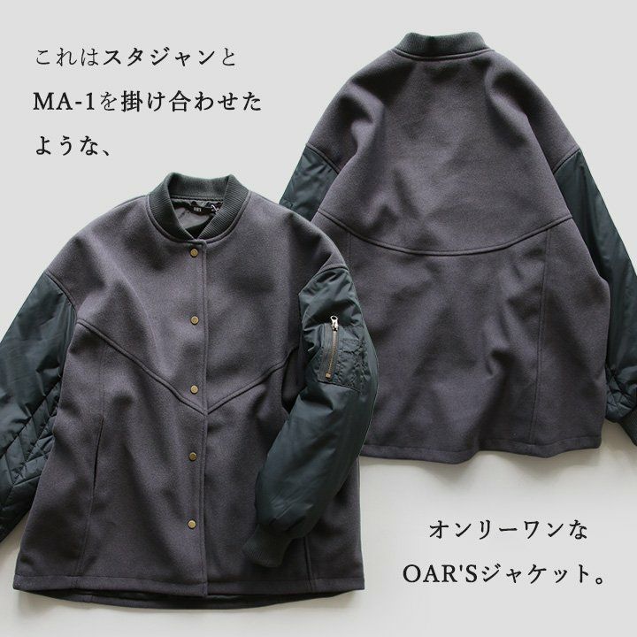他の画像を見る メンズも欲しがる、コンビジャケット。 ジャケット レディース メルトン風 袖中綿 キルティング MA-1 前後 アシメントリー着丈 ワイドシルエット 軽い 暖かい 防寒 秋 冬 大きいサイズ OAR’S オールズ 2~3日でお届け 販売価格 ¥ 8,690 税込 在庫切れ カートに入れる お気に入りに登録する