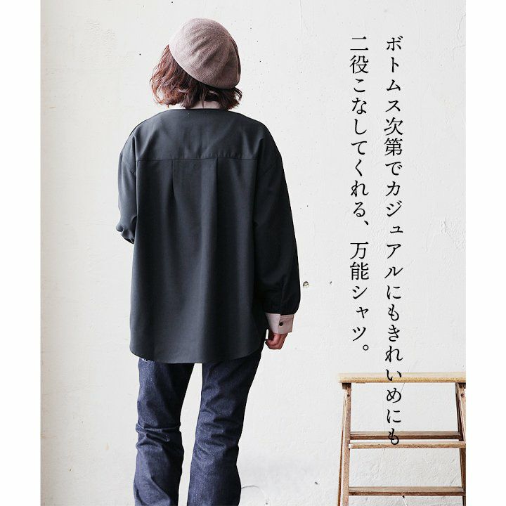 他の画像を見る デイリーにも、フォーマルにも、二役こなすクレリックシャツ。 シャツ クレリックシャツ レディース ノーカラー 無地 配色切り替え ポリエステル レーヨン 薄手 すっきり 体型カバー 大人カジュアル PATY パティ le colis ルコリ 2~3日でお届け 販売価格 ¥ 4,950 税込 在庫切れ カートに入れる お気に入りに登録する