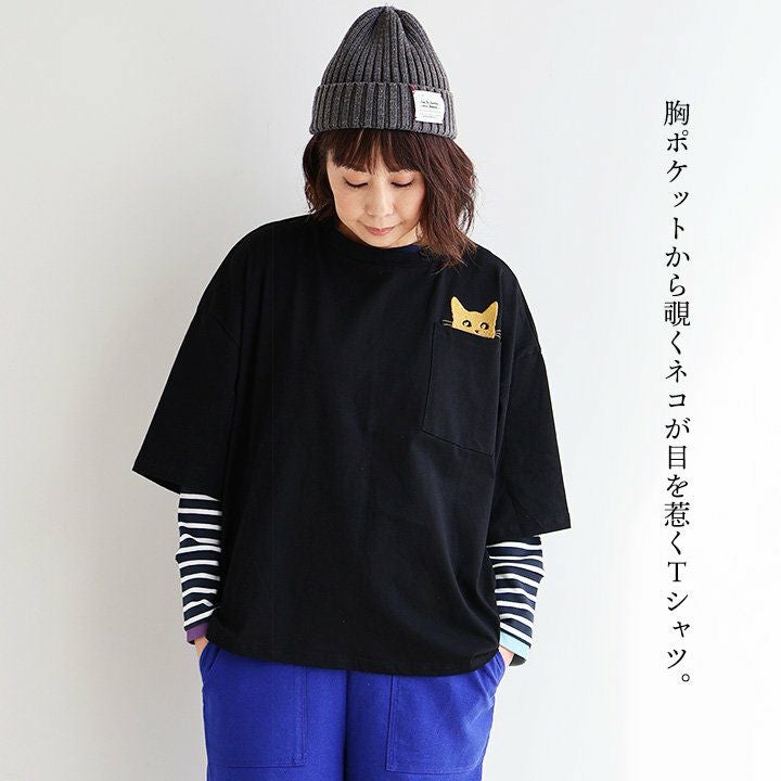 他の画像を見る ひょっこり覗いてます。 Tシャツ 半袖 レディース クルーネック 胸ポケット ネコ 猫 刺繍 無地 綿100% コットン 伸縮性 薄手 通気性 涼しい 横広 ワイド ゆったり 体型カバー 大きいサイズ 春 夏 カジュアル パティ 2~3日でお届け 販売価格 ¥ 6,050 税込 在庫切れ カートに入れる お気に入りに登録する