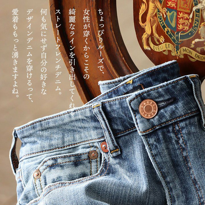 他の画像を見る 脚をスラっと長く、キレイに、カッコよく。 デニム ストレート ワイド フレンチ ロールアップ レディース コットン デニム 伸縮性 ストレッチ 配色ステッチ ゆったり カジュアル パティ 2~3日でお届け 販売価格 ¥ 15,400 税込 在庫切れ 詳細を見る お気に入りに登録する