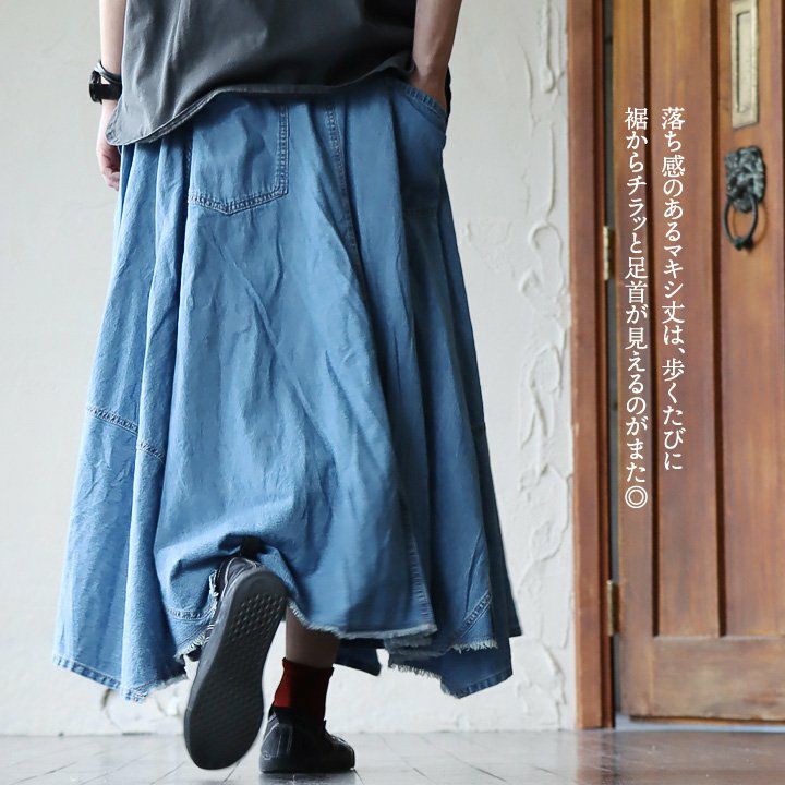 他の画像を見る ひと目を惹きつけるチカラがあり、スカートなのにカッコイイ。 スカート デニム マキシ丈 ロング丈 フレア ライトオンス デニム デニムスカート リメイク ウエストゴム レディース フレアスカート マキシスカート ロングスカート 2~3日でお届け 販売価格 ¥ 8,690 税込 在庫切れ 詳細を見る お気に入りに登録する