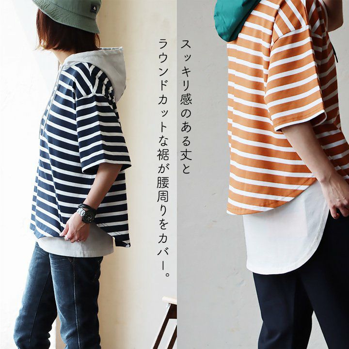 他の画像を見る Tシャツとパーカーの良いとこどり。 Tシャツ 5分袖 レディース クルーネック フード付き ボーダー 無地 配色 綿100% コットン 天竺 伸縮性 重ね着風 体型カバー 大きいサイズ すっきり カジュアル 夏 パティ le colis ルコリ 2~3日でお届け 販売価格 ¥ 4,950 税込 在庫切れ カートに入れる お気に入りに登録する