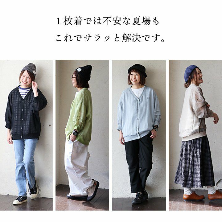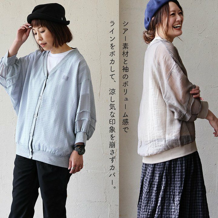 他の画像を見る Tシャツの上にサラッと羽織りやすい「心地よい透け感」。 カーディガン 長袖 レディース Vネック シアー 薄手 軽い 涼しい リブ切り替え シワ加工 大きいサイズ ゆったり 体型カバー カジュアル 夏 パティ 2~3日でお届け 販売価格 ¥ 5,390 税込 在庫切れ カートに入れる お気に入りに登録する