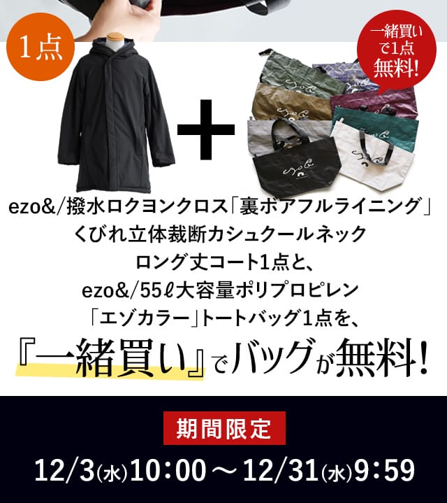 ※対象ezo&/ロング丈コートまたは、無料ezo&/トートバッグが