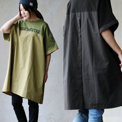 Tシャツとチュニックが合わさって、ちょっと目を引くデザインが素敵です。オーバーサイズなので、夏場も涼しく着れそうですね!
