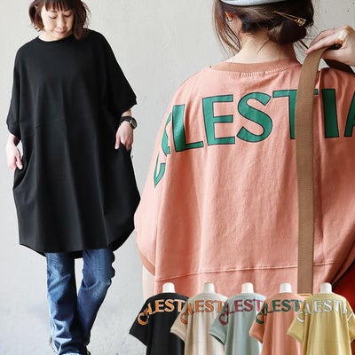 PATY チュニック tシャツ 五分袖 ロング ワイド レディース 着痩せ ゆったり スッキリ 細見え 半袖 しっかり 綿100% コットン ロゴ バック プリント お尻 二の腕 隠れる カバー ドロップショルダー 重ね着 カジュアル パティ SAIL セイルのレビュー