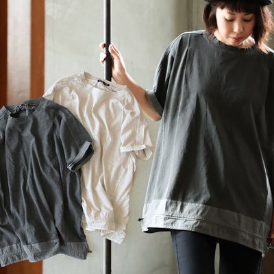 【メール便50】 かっこいい チュニック 着やせ ワイド 五分袖 tシャツ 夏 レディース 異素材 切り替え 綿100 コットン 二の腕 お尻 体系 カバー リメイク風 ドルマン tシャツ カジュアル パティ OAR’S オールズのレビュー