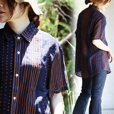 【メール便50】 柄シャツ レディース 着痩せ 落ち感 涼しい 半袖 綿100% コットン 夏 薄手 軽い レトロ ドット ストライプ クレイジー お尻 隠れる カジュアル パティ BLUETO ブルートのレビュー