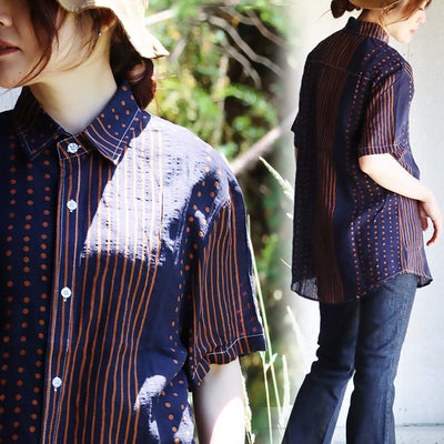 【メール便50】 柄シャツ レディース 着痩せ 落ち感 涼しい 五分袖 綿100% コットン 夏 薄手 軽い レトロ ドット ストライプ クレイジー お尻 隠れる カジュアル パティ BLUETO ブルートのレビュー