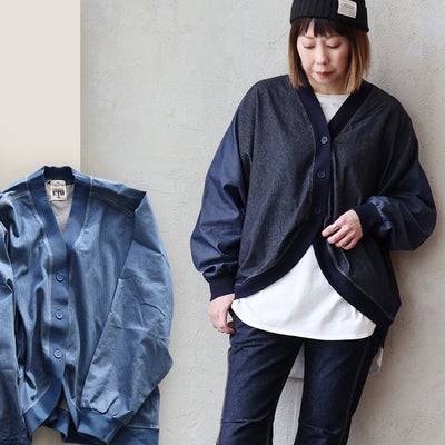 カーディガン 長袖 デニム レディース ワイド 着痩せ 春 切り替え ラウンド 袖リブ 配色ステッチ 柔らか カットデニム ゆったり 体型カバー 大人 カジュアル パティ BLUETO ブルートのレビュー