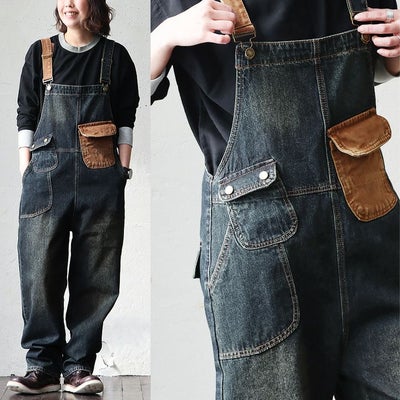 デニム サロペット レディース オーバーオール 綿100% しっかり 丈夫 ダメージ 配色切り替え ワイドシルエット ポケット ゆったり 大きいサイズ カジュアル ヴィンテージ ユーズドウォッシュ アメカジ パティ OAR’S オールズのレビュー