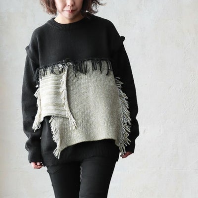 ニット 長袖 プルオーバー レディース クルーネック 異素材 ブロック 切り替え レイヤード フリンジ タッセル カットオフ グランジ カジュアル メンズライク 冬 パティ ALISTAIR アリステアのレビュー