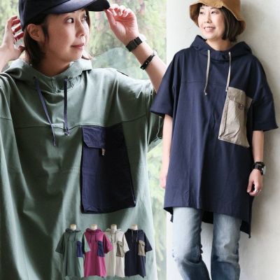 チュニック 5分袖 レディース ハイネック フード付き 綿100 コットン天竺 21番手 ナイロン 異素材切り替え 配色 胸ポケット 薄手 軽い 通気性 ゆったり お尻隠れる 着痩せ 体型カバー カジュアル 夏 パティ GENTIL ジャンティのレビュー