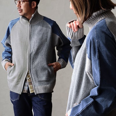 カーディガン デニム ニット メンズ レディース ジップアップ ロング 着痩せ ワイド ダブルジップ 秋冬 暖かい ポケット ラグラン スウェットデニム クレイジーニット 切り替え 首 袖 裾 リブ 大きいサイズ お尻 体型 カバー カジュアル パティ TOneontoNE トーンのレビュー