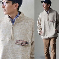 裏地はフリース素材で表はニットっぽい素材のプルオーバーで軽く、ゆとりのある生地なので腰まで暖かいです。在庫が無かったのでアイボリーを買いましたがあたたかみのある明るいベージュと言う感じで冬らしいカラーです。チロリアンテープもアクセントになってとても可愛いです。再入荷することがあればグレーも買いたいです。 -