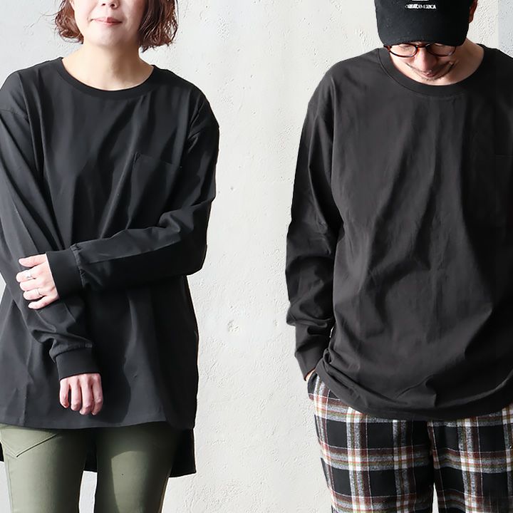 長袖 tシャツ ロングtシャツ メンズ レディース 秋 しっかり 丈夫 柔らか 綿100 USAコットン 重ね着 ポケット 袖リブ サイドスリット ワイド 着痩せ 体系 お尻 カバー 長T ロンt 大きいサイズ カジュアル パティ