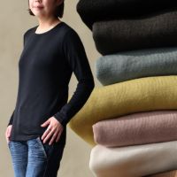 やわらかく肌触りの良い商品です。襟ぐりの開き具合がちょうどよく合わせやすいカットソ-です。