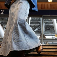 スカート マキシ デニム ヒッコリー Aライン ロングスカート かっこいい ストレッチ ストライプ リメイク マキシスカート デニムスカート すっきり 足長 内紐 大きいサイズ 大人 カジュアル アメカジ フレア パティ BLUETO ブルート