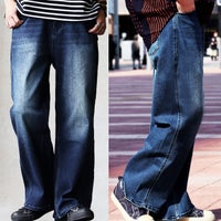 デニム ワイドパンツ コクーン レディース 綿 コットン スーパーストレッチ 伸びる ユーズド ワンウォッシュ ウエストリブ ゆったり 大きいサイズ 体型カバー フルレングス メンズライク カジュアル パティ BLUETO ブルート