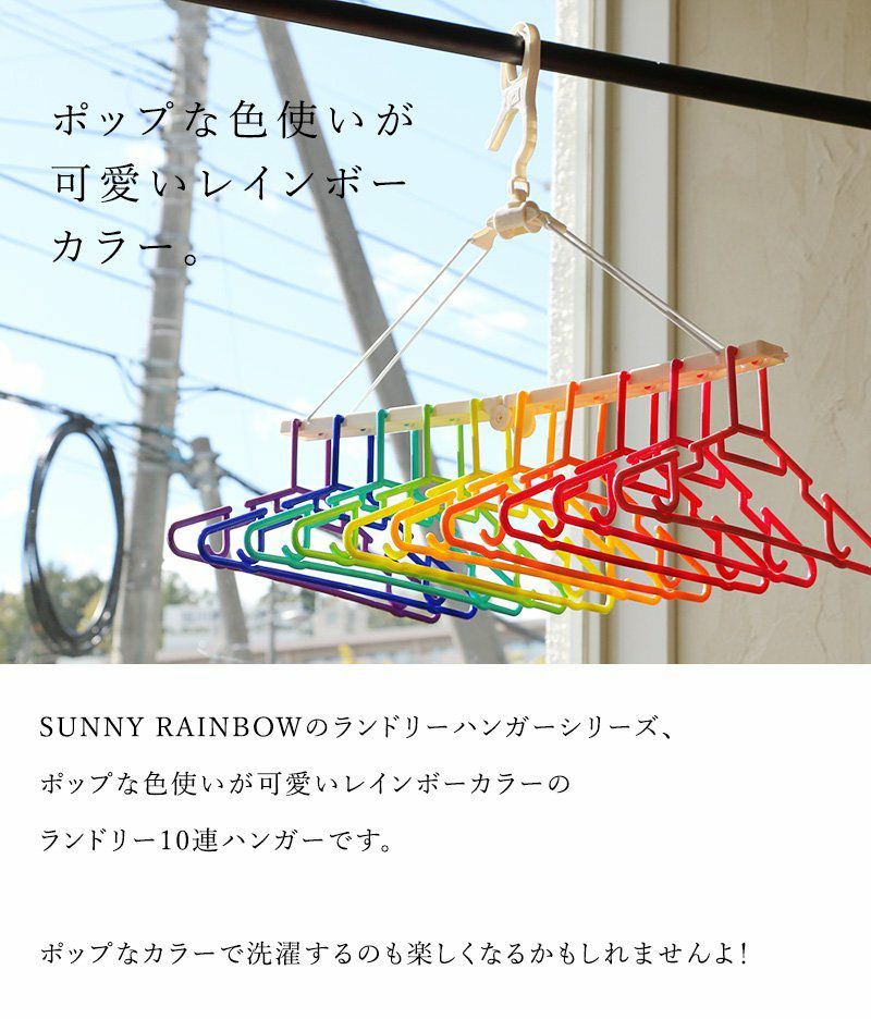 他の画像を見る 部屋干しの際にも部屋が明るくなる気がします。 SUNNY RAINBOW フォルダブルハンガー 10連 ハンガー 10連ハンガー レインボーカラー カラフル ポップ 通気性 キャミソール タオル レディース メンズ 2~3日でお届け 販売価格 ¥ 2,090 税込 在庫切れ カートに入れる お気に入りに登録する
