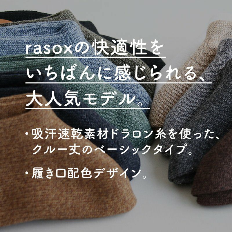 他の画像を見る 「履いてみると全然違う。」と評判です。 靴下 くつ下 ソックス クルーソックス L字型 配色 吸放 湿性 ドラロン コットン アクリル 日本製 レディース メンズ 22-24cm 24-26cm 26-28cm 40代 50代 rasox [ラソックス] 【メール便12】[メール便12] 販売価格 ¥ 1,430 税込 在庫切れ カートに入れる お気に入りに登録する