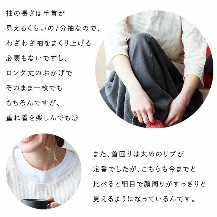 他の画像を見る 一度着ると手放したくない、心地良さ。 カットソー 7分袖 レディース クルーネック ロング丈 お尻隠れる 無地 ワッフル サーマル 通気性 保温性 薄手 重ね着 春 春服 カジュアル PATY パティ JEMORGAN ジェーイーモーガン 2~3日でお届け 販売価格 ¥ 2,090 税込 在庫切れ カートに入れる お気に入りに登録する