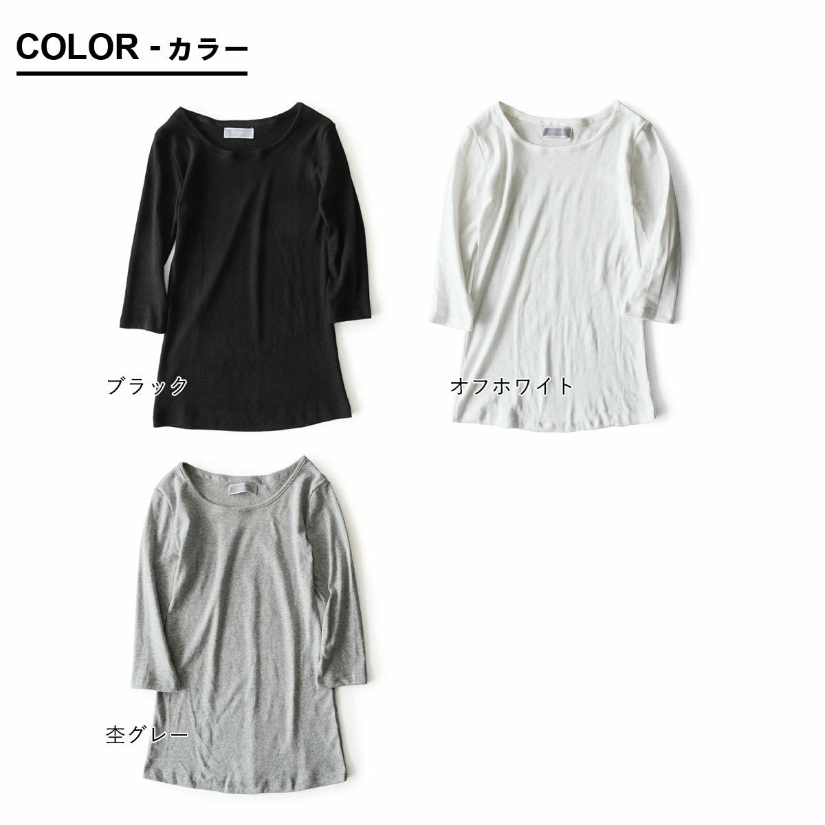 バストやお腹に引っ張られない、「長め着丈」の重ね着カットソー。 【メール便50】 カットソー ロング丈 tシャツ 七分袖 インナー レディース 日本製 綿100% コットン バスト や お腹周り に 生地を取られない 長め着丈 胸元カバー Uネック 柔らかい トップス 7分袖 重ね着用 下着 肌着 肌に優しい パティ Souple スプル