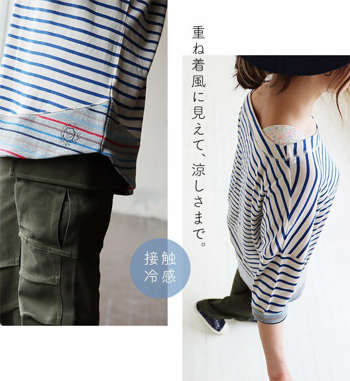 他の画像を見る 重ね着風に見えて、涼しさまで。 Tシャツ 5分袖 ボーダー レディース ボートネック 先染め 綿100% 重ね着風 接触冷感 涼しい 薄手 通気性 ストレッチ ゆったり 夏 夏服 カジュアル PATY パティ 2~3日でお届け 販売価格 ¥ 3,289 税込 在庫切れ カートに入れる お気に入りに登録する