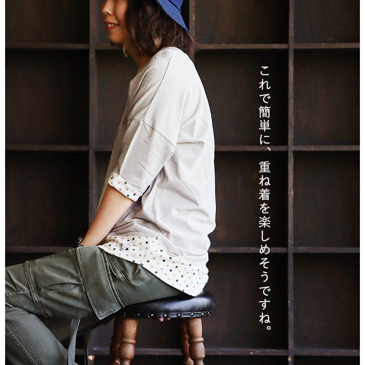 他の画像を見る 簡単に、重ね着上手。 Tシャツ 5分袖 レディース ボーダー ドット柄 綿100% 重ね着風 涼しい 薄手 通気性 伸縮性 ゆったり 夏 夏服 カジュアル PATY パティ 2~3日でお届け 販売価格 ¥ 3,289 税込 在庫切れ カートに入れる お気に入りに登録する