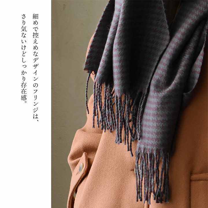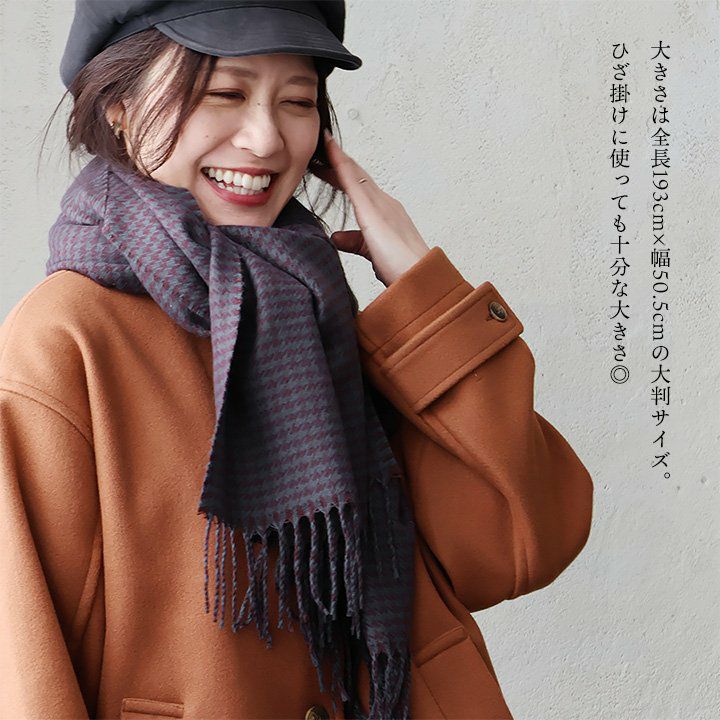 他の画像を見る 大人好みの「上品さ」と「暖かさ」。 マフラー ストール レディース 大判 ひざ掛け 千鳥格子 総柄 フリンジ 暖かい 防寒 お出かけ 秋 冬 パティ 2~3日でお届け 販売価格 ¥ 3,190 税込 カートに入れる お気に入りに登録する
