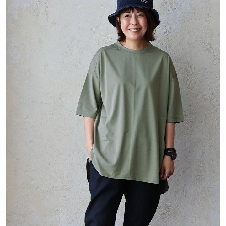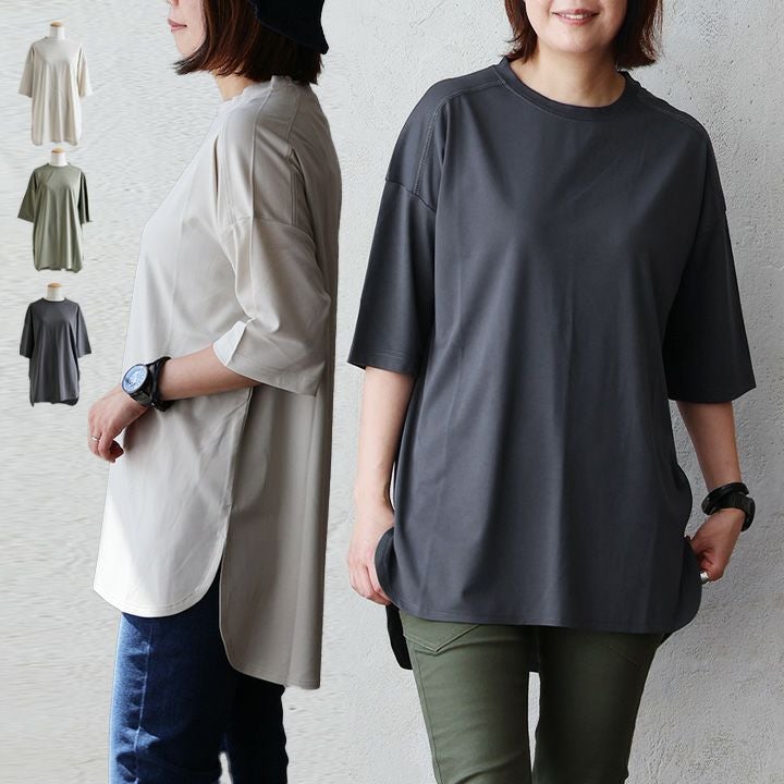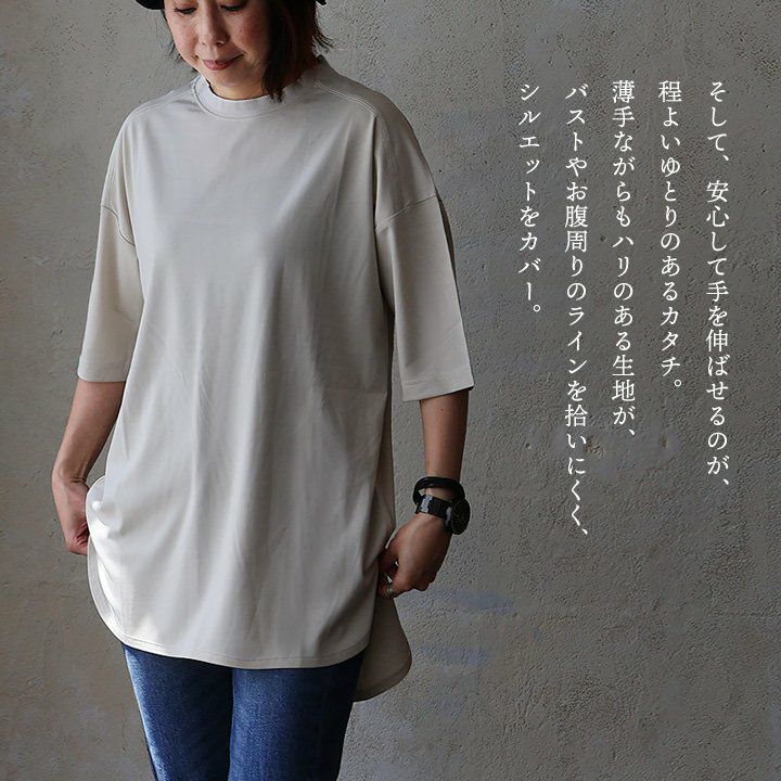 他の画像を見る ベーシックな見た目に隠れた「涼しさ・カバー力」。 【メール便50】 Tシャツ 5分袖 レディース クルーネック 無地 お尻隠れる すっきり 着痩せ 接触冷感 薄手 涼しい ストレッチ 大きいサイズ 体型カバー カジュアル 夏 パティ 販売価格 ¥ 2,750 税込 カートに入れる お気に入りに登録する