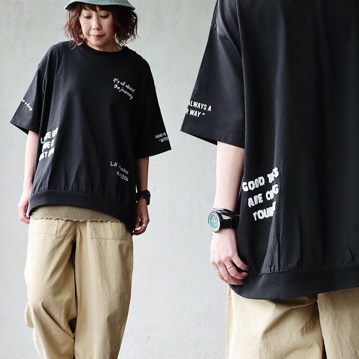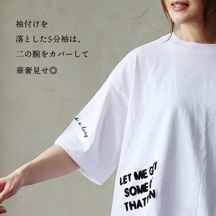 他の画像を見る ロゴ使いが「贅沢」なモノトーンデザイン。 Tシャツ 5分袖 レディース クルーネック ワイド 着痩せ すっきり ロゴプリント 刺繍 サガラ刺繍 綿100 コットン 伸縮性 ゆったり 体型カバー 大きいサイズ カジュアル 夏 夏服 パティ 2~3日でお届け 販売価格 ¥ 4,290 税込 在庫切れ カートに入れる お気に入りに登録する