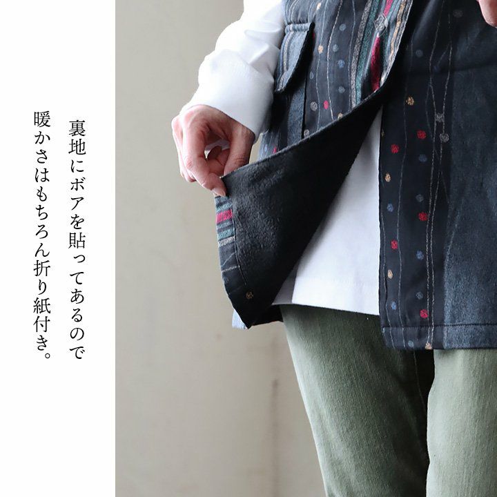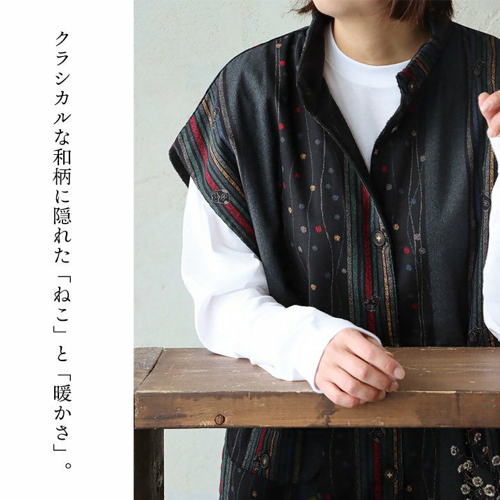他の画像を見る クラシカルな和柄に隠れた「ねこ」と「暖かさ」。 ベスト 前開き ロング丈 ロングベスト レディース 裏ボア フリース スタンドネック 和柄 和モダン レトロ 暖かい 軽い 重ね着 ねこ ネコ 猫 アニマル 動物 ZOO スモック スモックベスト 秋 冬 パティ 2~3日でお届け 販売価格 ¥ 3,850 税込 在庫切れ カートに入れる お気に入りに登録する