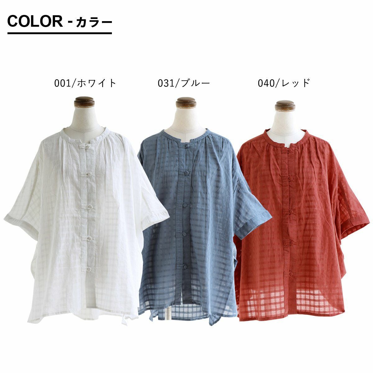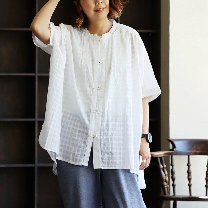他の画像を見る ひとクセある、「薄涼しい」ブラウス。 ブラウス 半袖 レディース バンドカラー お尻隠れる ジャガード チェック 綿100% 薄手 涼しい 夏 夏服 ゆったり ワイドシルエット 着痩せ 体型カバー カジュアル PATY パティ 2~3日でお届け 販売価格 ¥ 4,290 税込 在庫切れ カートに入れる お気に入りに登録する