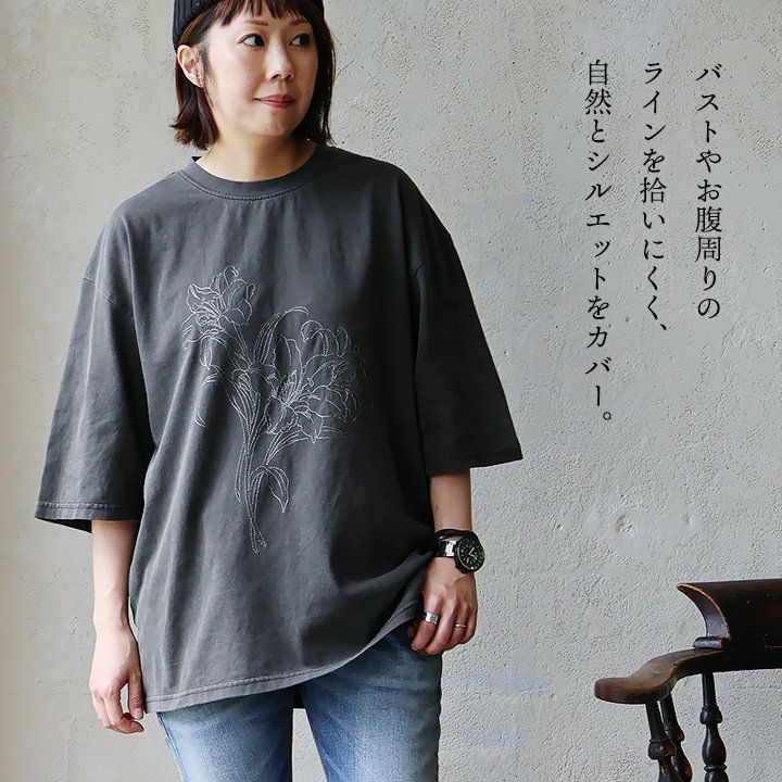 他の画像を見る ゆるっとラフに着ても、サマになる「刺繍」。 【メール便50】 Tシャツ 5分袖 メンズ レディース クルーネック 刺繍 フラワー 花 綿100 コットン ピグメント 褪せ色 ゆったり 大きいサイズ 体型カバー カジュアル パティ 2~3日でお届け 販売価格 ¥ 4,290 税込 カートに入れる お気に入りに登録する