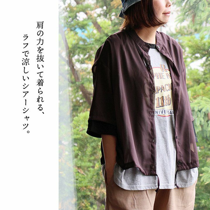 他の画像を見る 肩の力のを抜いて着られる、ラフで涼しいシアーシャツ。 シャツ 5分袖 レディース バンドカラー シアー 無地 透け感 薄手 涼しい ポリエステル 重ね着 ゆったり 大きいサイズ 体型カバー カジュアル 夏 パティ GENTIL ジャンティ 2~3日でお届け 販売価格 ¥ 4,290 税込 カートに入れる お気に入りに登録する