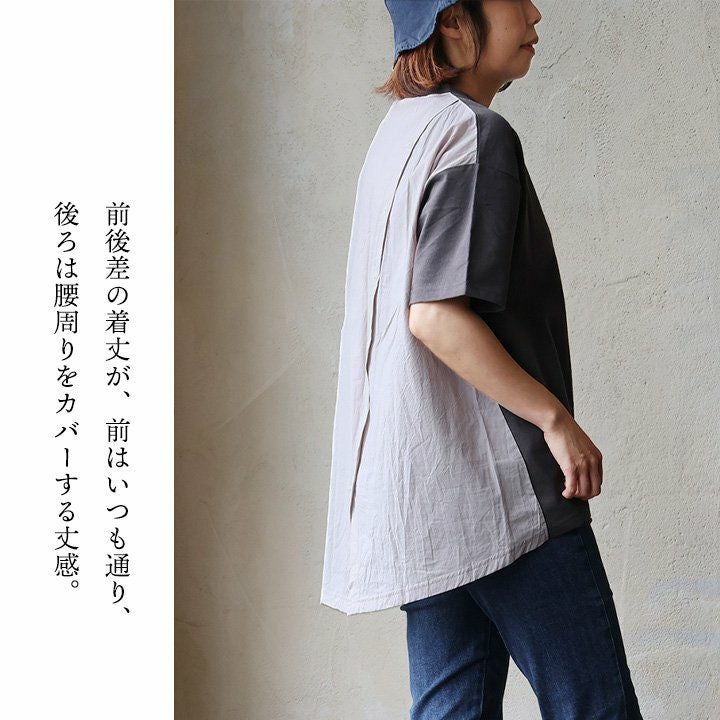 他の画像を見る いつものTシャツ感覚で着られるのに、「気を抜いていない感」。 【メール便50】 Tシャツ 5分袖 レディース クルーネック 異素材切り替え バックシャン 綿100 コットン 薄手 通気性 体型カバー 着痩せ すっきり カジュアル パティ le colis ルコリ 販売価格 ¥ 3,520 税込 カートに入れる お気に入りに登録する