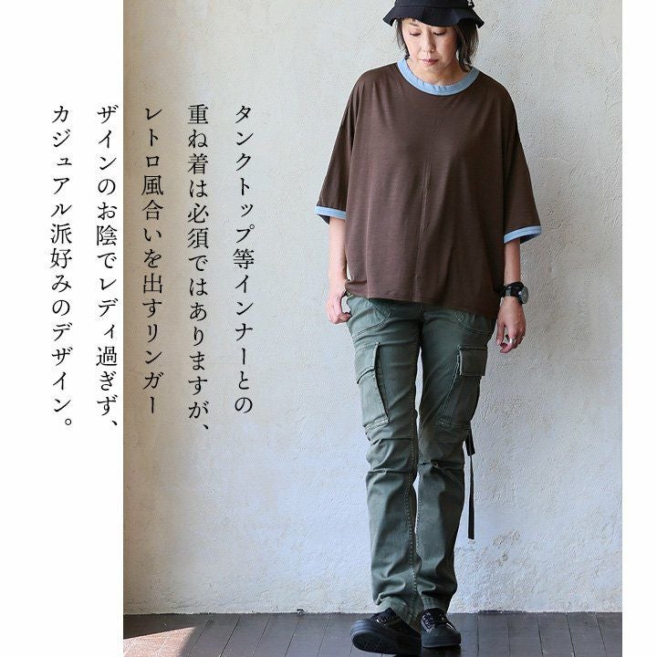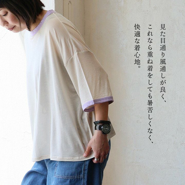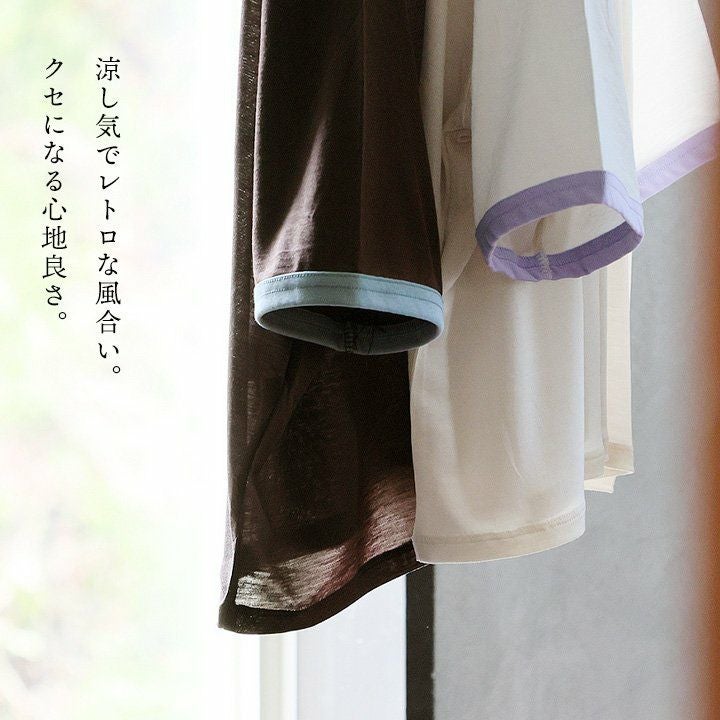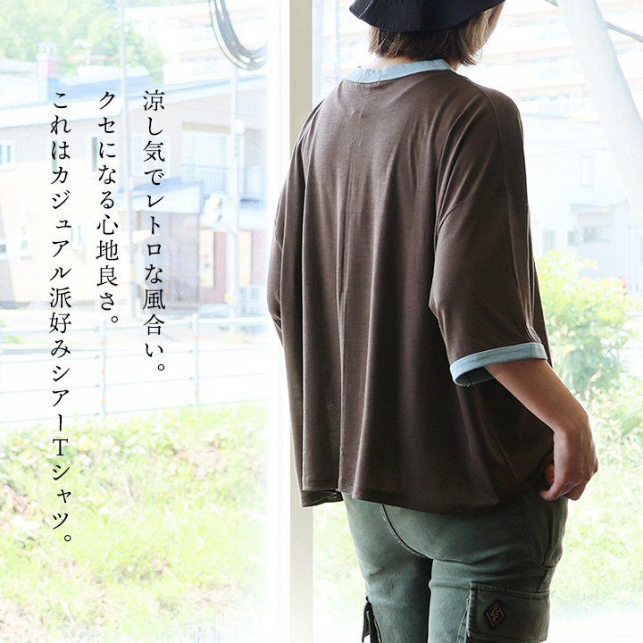 他の画像を見る 涼し気でレトロな風合い。クセになる心地良さ。 【メール便50】 Tシャツ リンガーTシャツ 5分袖 クルーネック 配色 テンセル 薄手 涼しい シアー 透け感 軽い 大きいサイズ 体型カバー 着痩せ すっきり カジュアル 夏 パティ 2~3日でお届け 販売価格 ¥ 4,290 税込 カートに入れる お気に入りに登録する
