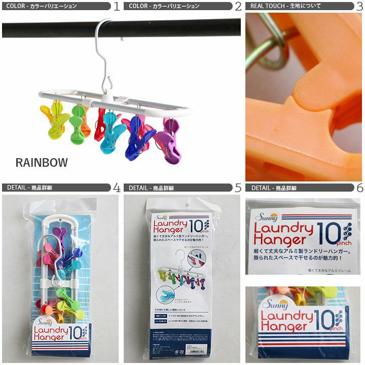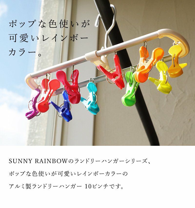 他の画像を見る 部屋干しの際にも部屋が明るくなる気がします。 SUNNY RAINBOW ランドリーハンガー 10ピンチ 洗濯ばさみ 10個 ハンガー ポップ アルミ製 レインボーカラー コンパクトサイズ 部屋干し 旅行用 一人暮らし カラフル 2~3日でお届け 販売価格 ¥ 1,100 税込 在庫切れ カートに入れる お気に入りに登録する