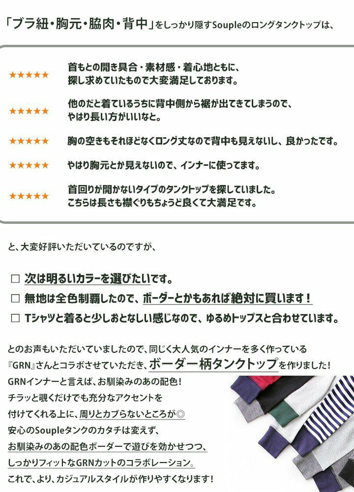 他の画像を見る 見せたくないところをスッキリ隠して『遊べる』ボーダータンク。 (ジーアルエヌ×スプル) GRN×Souple タンクトップ ロング コラボ 配色 ボーダー 綿100% 春 夏 40代 50代 販売価格 ¥ 1,650 税込 在庫切れ カートに入れる お気に入りに登録する