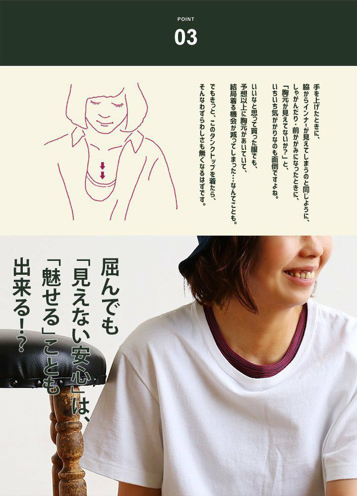 他の画像を見る 見せたくないところをスッキリ隠す、『ロングカバー』タンク。 タンクトップ ロング丈 胸元 が 見えない カバーネック 綿100% 【廃盤色】 レディース インナー 重ね着 大きいサイズ ブラ紐見えない ブラ紐隠し| カジュアル 胸 が 見え ない カバー タンク トップ ロングタンクトップ paty パティ Souple スプル 【メール便25】 2~3日でお届け 販売価格 ¥ 1,650 税込 在庫切れ 詳細を見る お気に入りに登録する