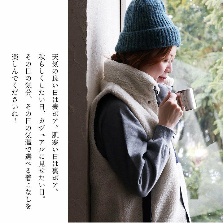 他の画像を見る その日の気分、その日の気温で選べる着こなし。 gym master ジムマスター ベスト ボアベスト メンズ レディース ハイネック リバーシブル ボア フード収納 クレイジー 異素材切り替え 暖かい 防寒 防風 重ね着 レイヤード カジュアル アウトドア メンズライク パティ 2~3日でお届け 販売価格 ¥ 11,880 税込 カートに入れる お気に入りに登録する