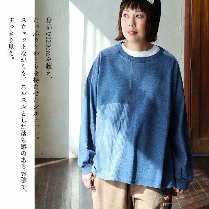 他の画像を見る だから、1枚でも安心。 スウェット プルオーバー 長袖 レディース インディゴ 異素材切り替え 無地 ストライプ ミニ裏毛 伸縮性 ゆったり 大きいサイズ 体型カバー カジュアル 秋 冬 パティ 2~3日でお届け 販売価格 ¥ 6,490 税込 カートに入れる お気に入りに登録する