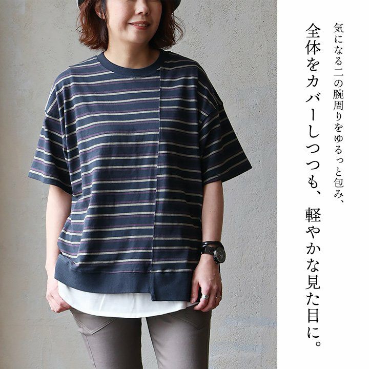他の画像を見る メリハリ効かせて、ゆるっと着痩せ。 【メール便50】 ドルマン tシャツ レディース 5分袖 しっかり 綿100% 配色 リブ ビッグシルエット 7分袖 ワイドシルエット ゆったり 着痩せ 甘くない 二の腕 カバー ティーシャツ クルーネック 5分袖tシャツ 無地 大人 カジュアル パティ Souple スプル 2~3日でお届け 販売価格 ¥ 3,850 税込 カートに入れる お気に入りに登録する