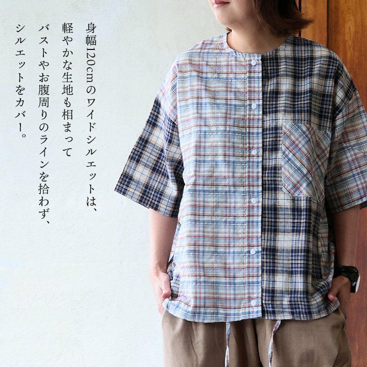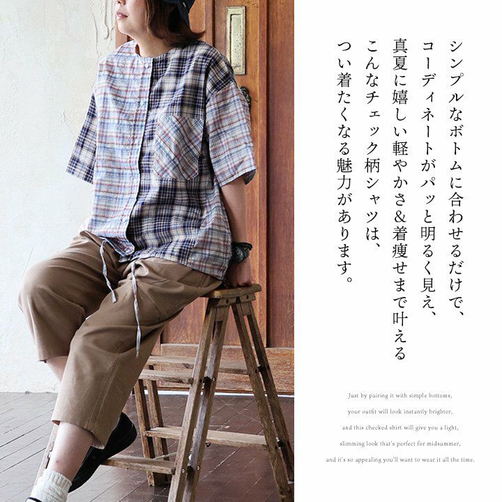 他の画像を見る パッと明るく、ふわっと軽く、着痩せまで。 【メール便50】 シャツ 5分袖 レディース ノーカラー チェック柄 配色切り替え コットン ポリエステル 薄手 通気性 軽い ゆったり 大きいサイズ 体型カバー 着痩せ すっきり カジュアル 夏 パティ GENTIL ジャンティ 2~3日でお届け 販売価格 ¥ 6,490 税込 カートに入れる お気に入りに登録する