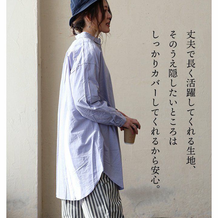 他の画像を見る 私には安心して着られるシャツがある。 シャツ 長袖 チュニック レディース お尻隠れる 着痩せ 無地 コットン100% 綿 ピグメント しっかり生地 軽い 体型カバー 大きいサイズ カジュアル パティ 2~3日でお届け 販売価格 ¥ 4,290 税込 カートに入れる お気に入りに登録する