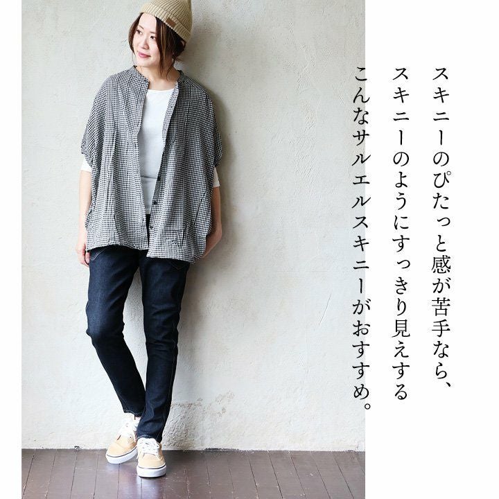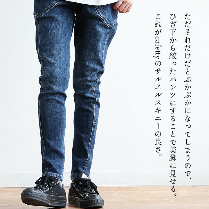 他の画像を見る スキニーほどぴたっとせずに、スキニーみたいにすっきり見え。 cafetty カフェッティ サルエルパンツ パンツ レディース デニム コットン ストレッチ 伸縮性 ウエストゴム ゆったり 動きやすい カジュアル 春 夏 秋 冬 パティ 2~3日でお届け 販売価格 ¥ 9,900 税込 詳細を見る お気に入りに登録する